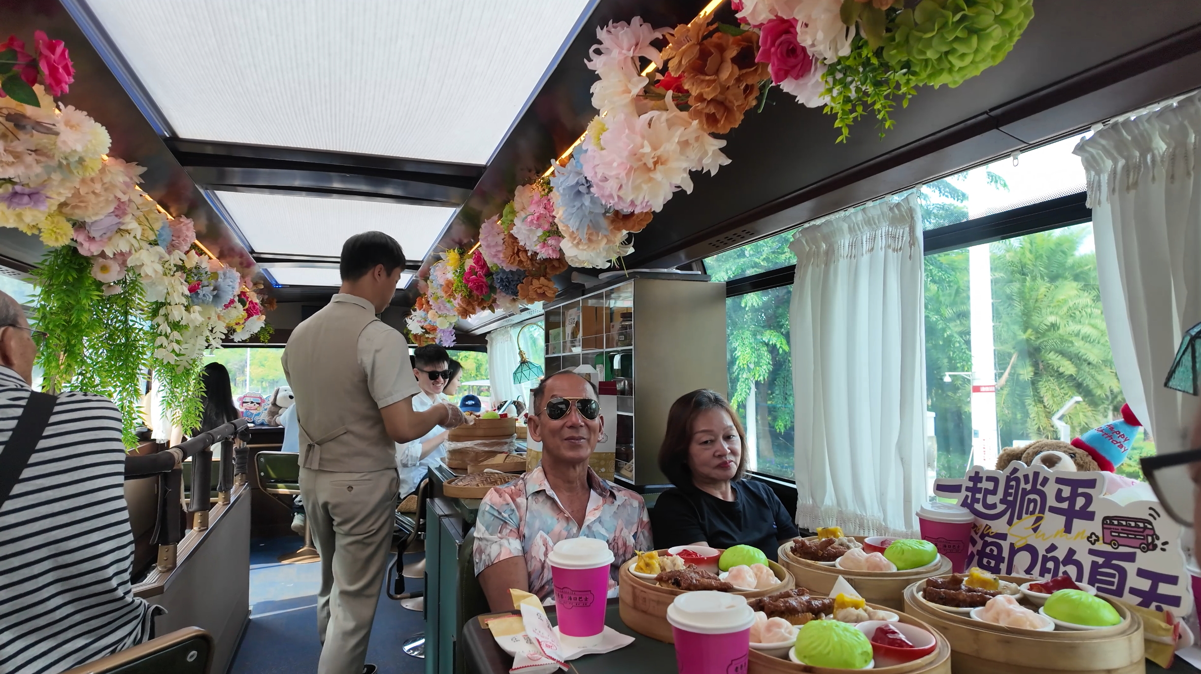 “为什么要把老爸茶和双层巴士结合?”面对这个问题,“老爸茶”海口巴士乘务长李献戟的回答满是对本土文化的热爱:“老爸茶是海南人刻在骨子里的生活方式,而观光巴士是游览城市风景的最佳载体。我们想做的,就是把本地人的日常,搬到车上——让游客一边看风景,一边喝茶,沉浸式感受海口的烟火气。”