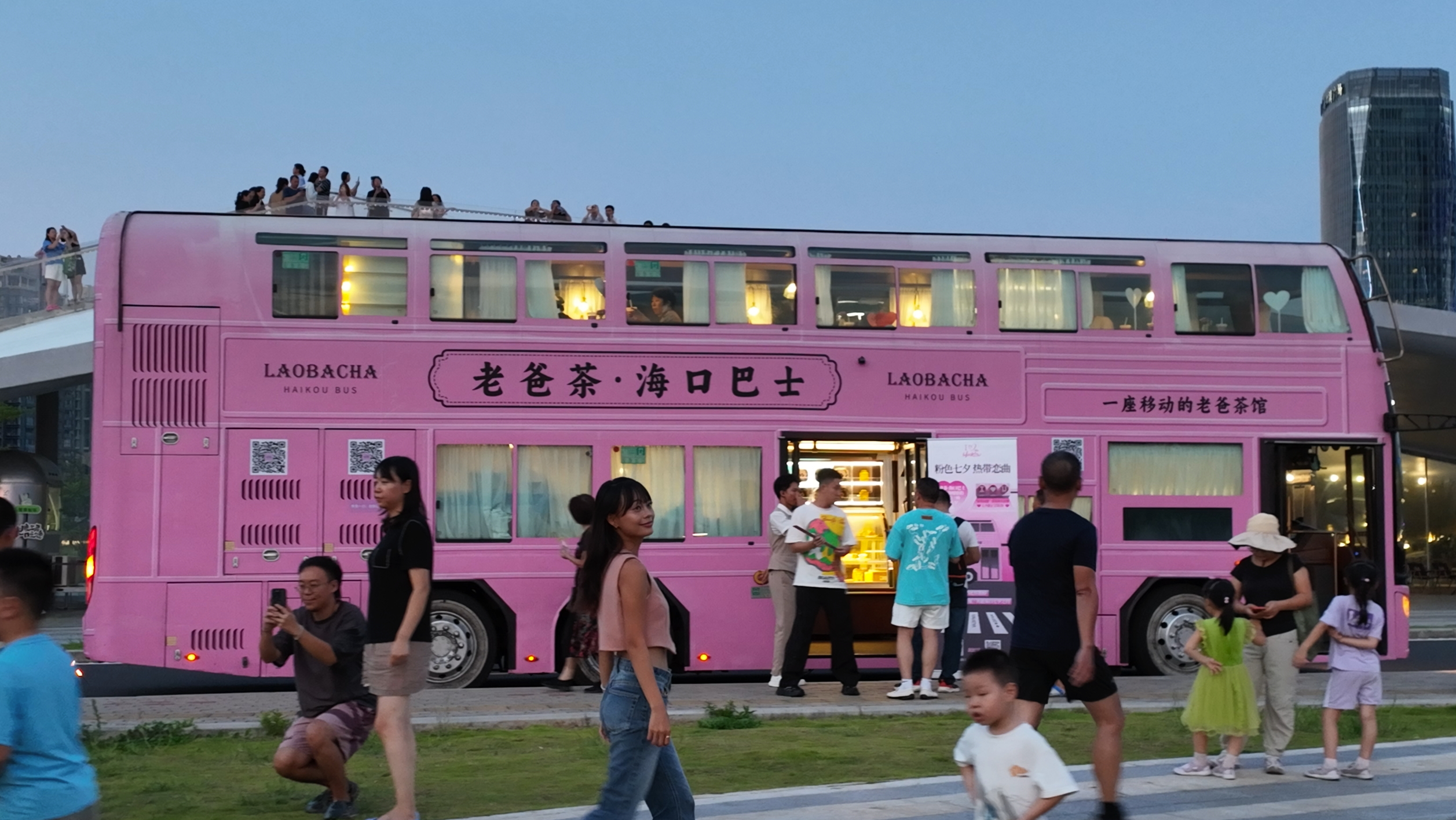 在海口,有一种生活叫“老爸茶”——几张桌椅、一壶清茶、几碟点心,邻里街坊围坐闲谈,时光在茶香中缓缓流淌;有一种游览叫“双层巴士”,登高望远,让城市风光随车轮徐徐展开。
